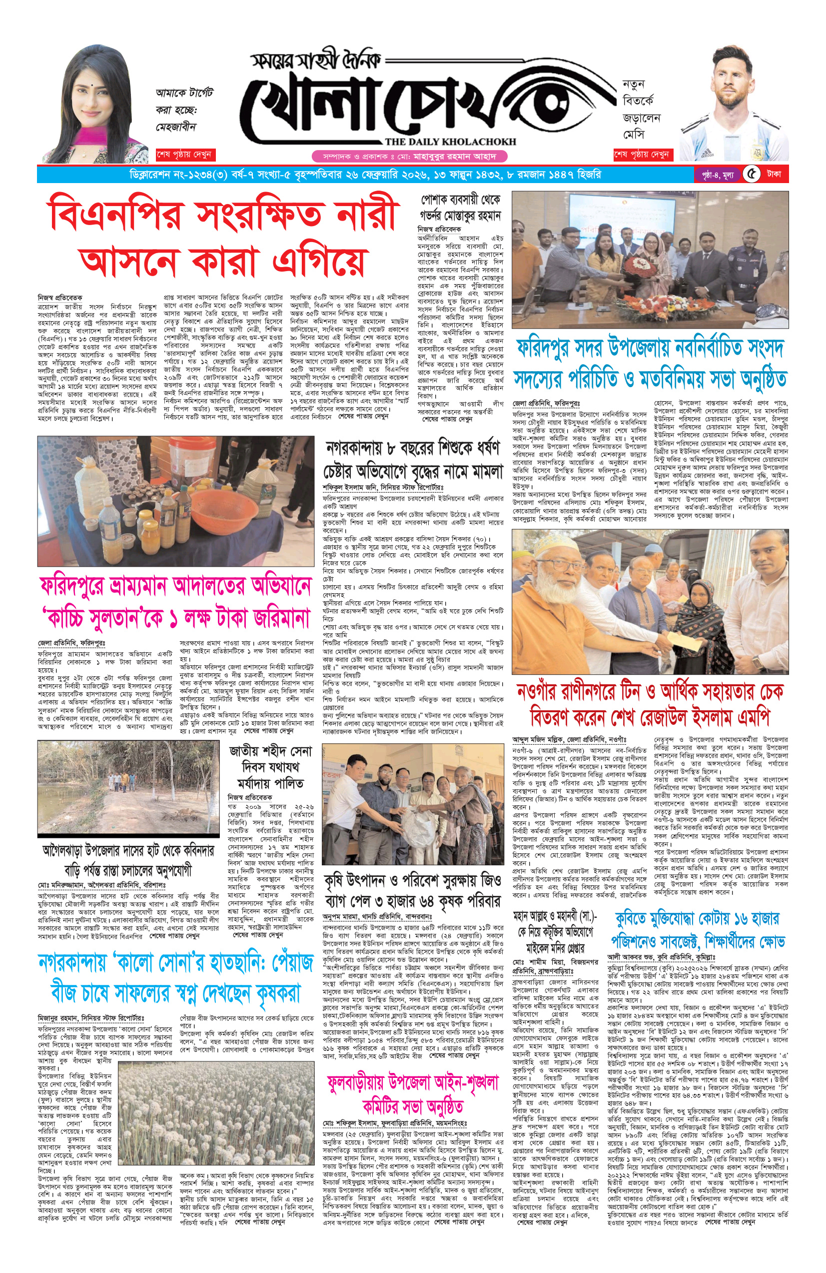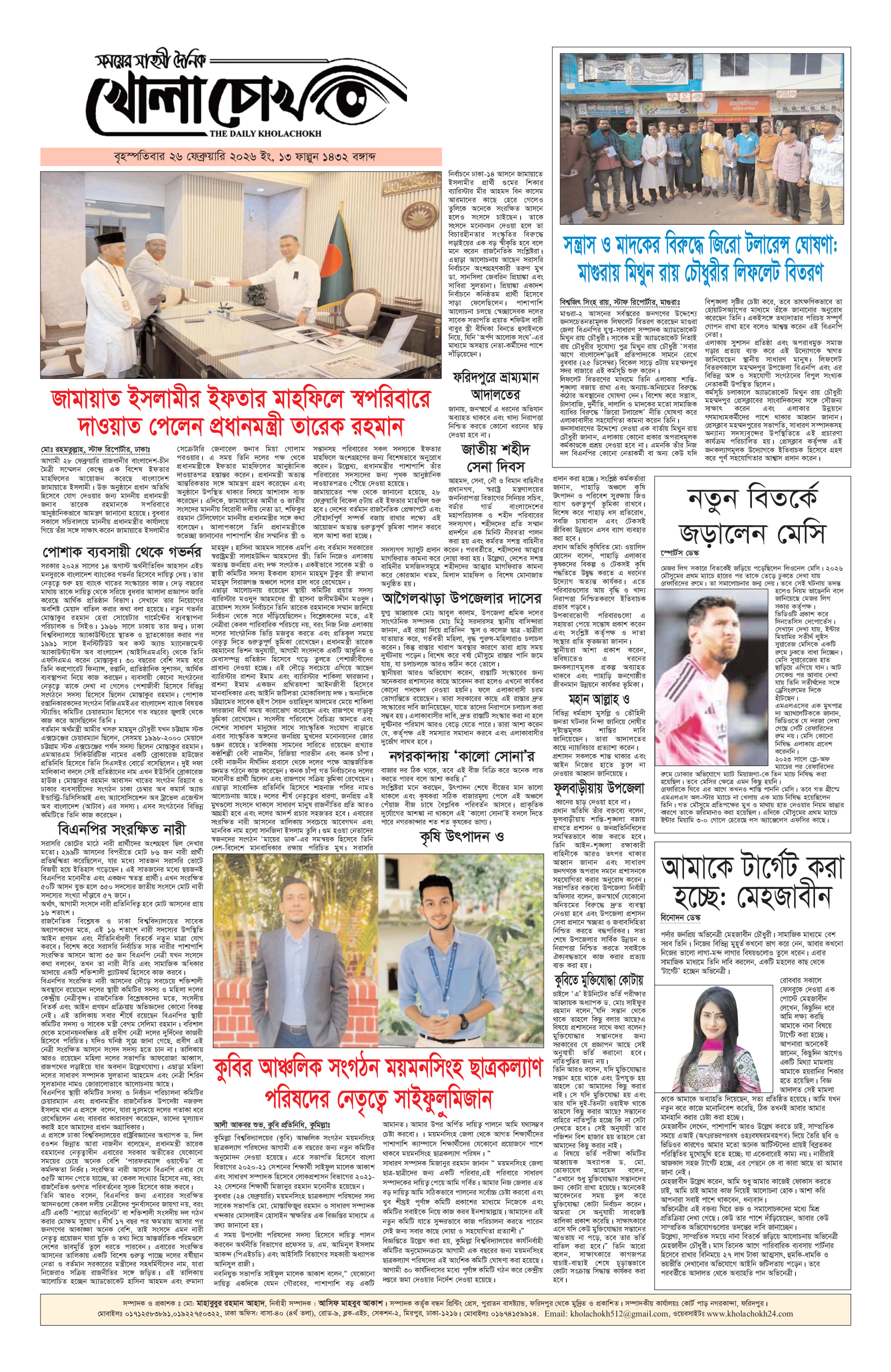 বৃহস্পতিবার ২৬ ফেব্রুয়ারি ২০২৬