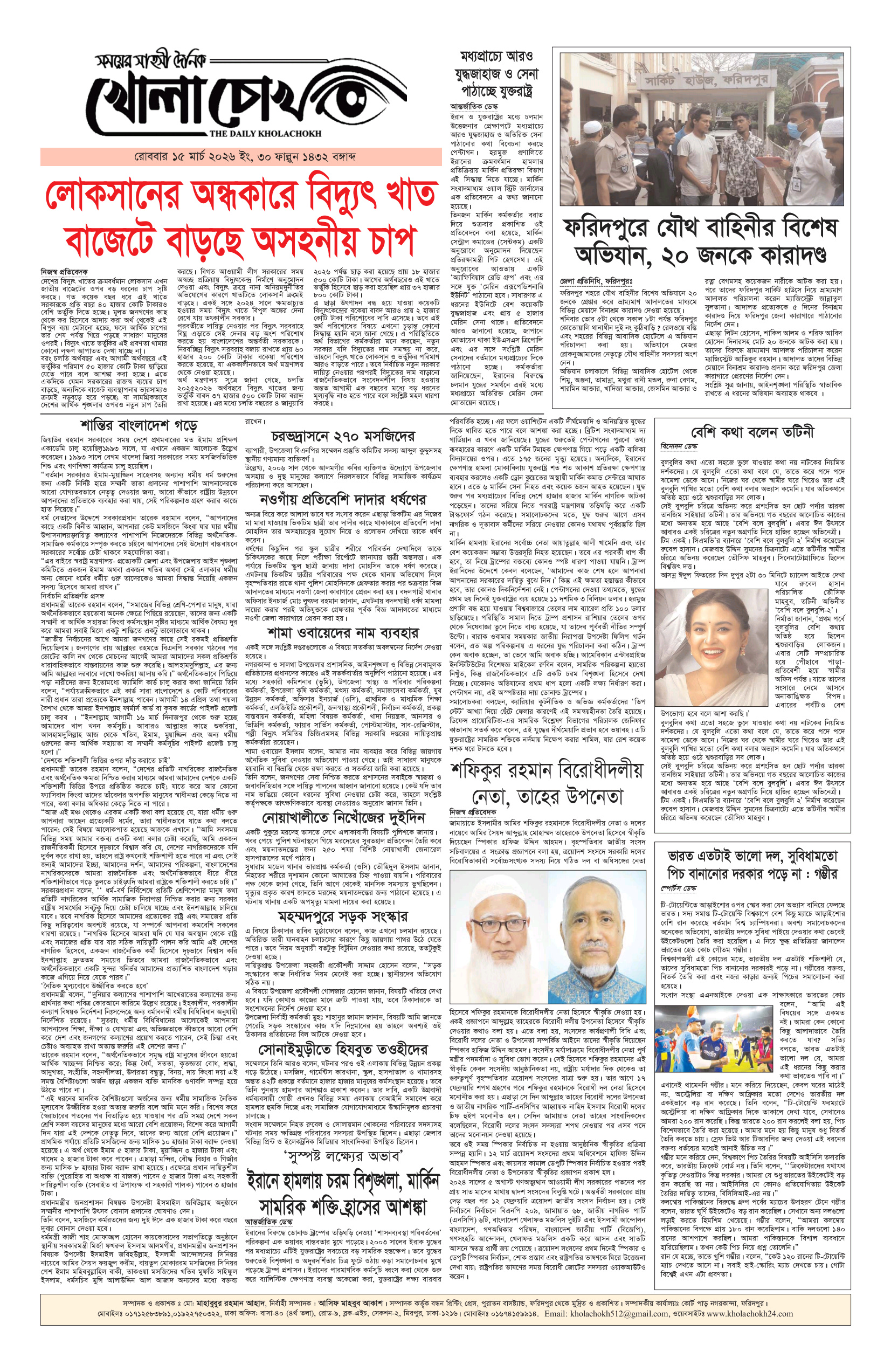 রবিবার ১৫ মার্চ ২০২৬