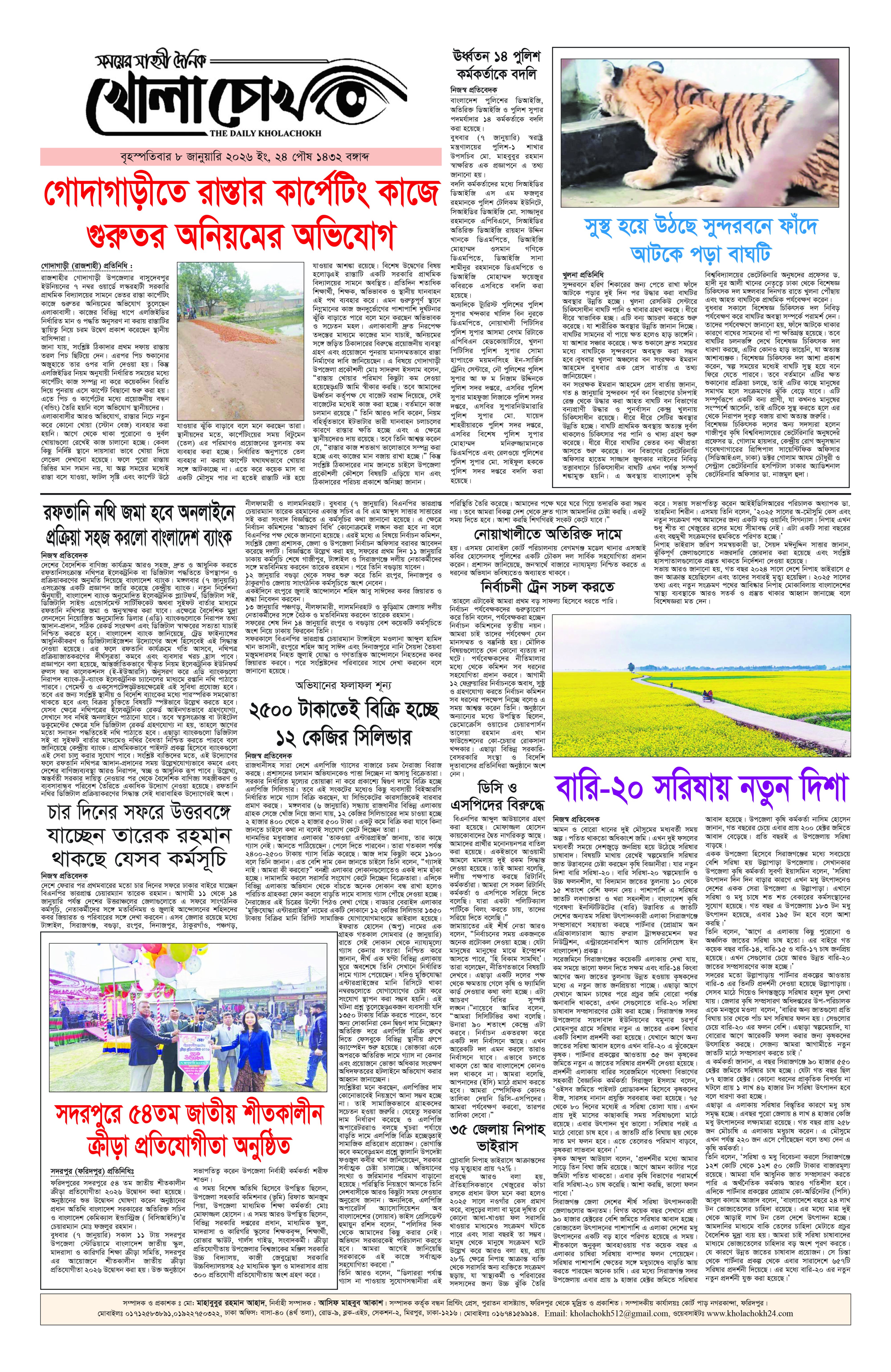 বৃহস্পতিবার ০৮ জানুয়ারি ২০২৬